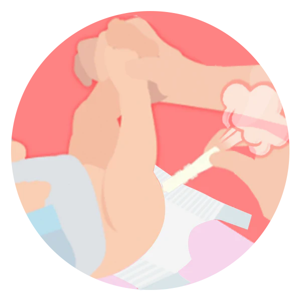 Solleva le gambe del bambino e prepara il pannolino, poichè potrebbe sporcarsi.
