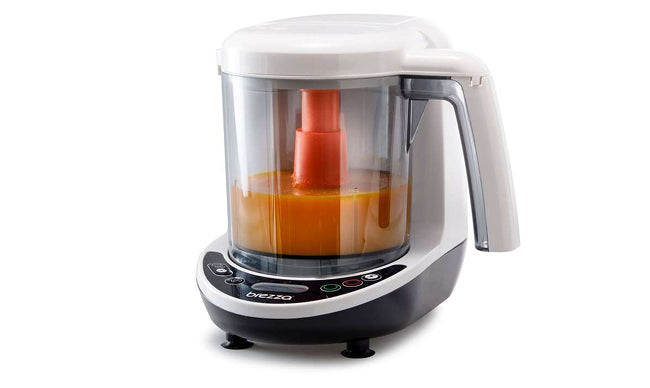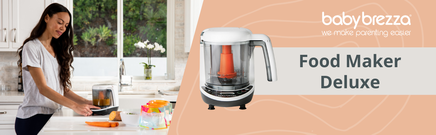 Samo deset minut in en enostaven korak je potreben, da pripravite hranljivo domačo otroško hrano z napravo Baby Brezza One Step™ Food Maker Deluxe. Ta nagrajen aparat otroške hrane je edini, ki samodejno kuha in meša s pritiskom na gumb in vključuje vse, kar potrebujete za pripravo, shranjevanje in postrežbo obrokov za vašega malčka.